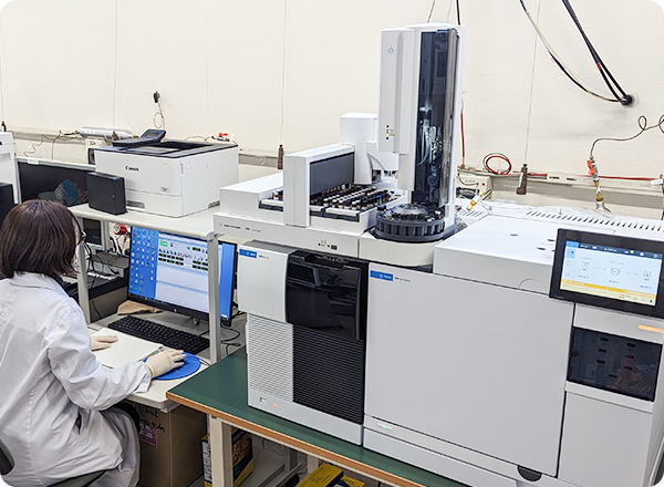 高度な分析装置(例:ガスクロマトグラフィー質量分析法・GC‐MS)を用いて、空気中の化合物を特定します。